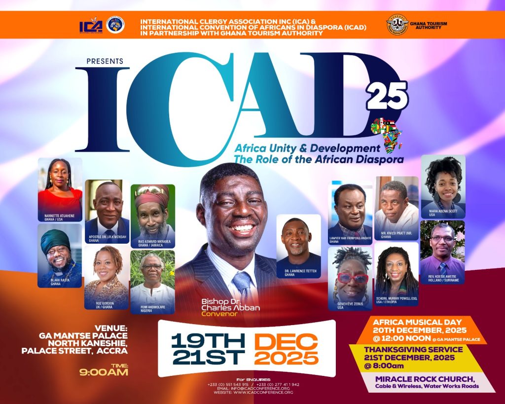 President of the International Convention of Africans in Diaspora (ICAD), Bishop Dr Charles Abban, has urged diaspora communities, particularly Africans, to unite for stronger economic impact, cultural preservation, and national development.