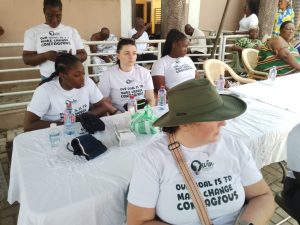 The Queenmother of Kwahu Obomeng,Nana Ohemaa Yaakwei ll, commending the efforts of mothers during the Easter celebration by organizing health talk and screening in collaboration with Owen Foundation and Kwahu Professionals for aged people in Kwahu Obomeng.