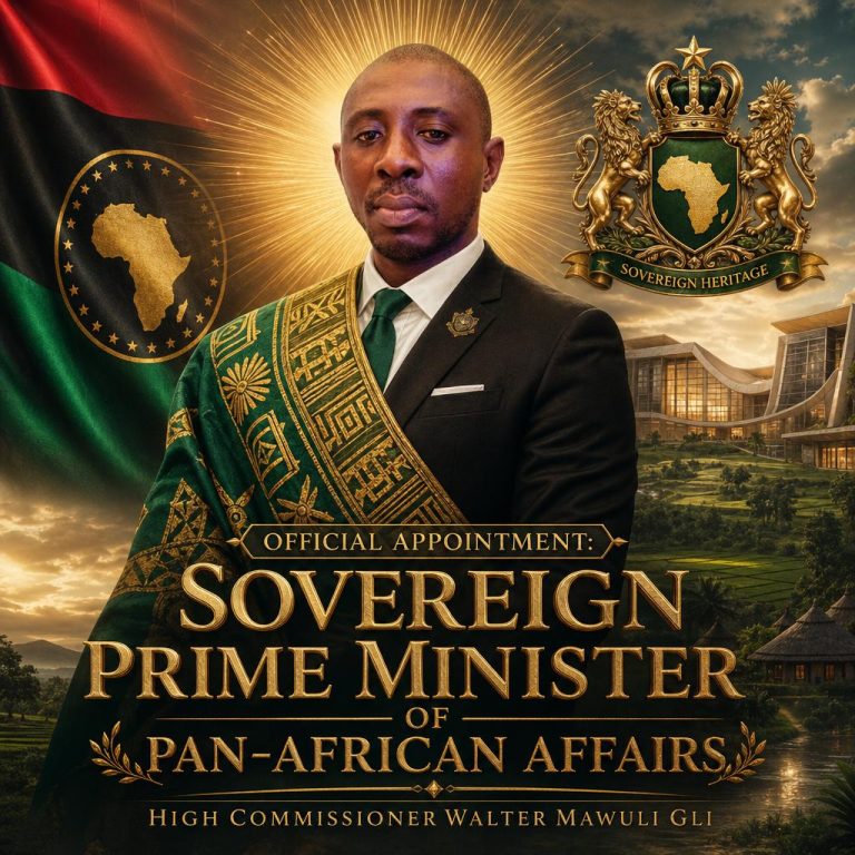 WALTER MAWULI GLI APPOINT AS SOVEREIGN PRIME MINISTER OF PAN AFRICAN AFFAIRS Walter Mawuli Gli has been appointed Sovereign Prime Minister